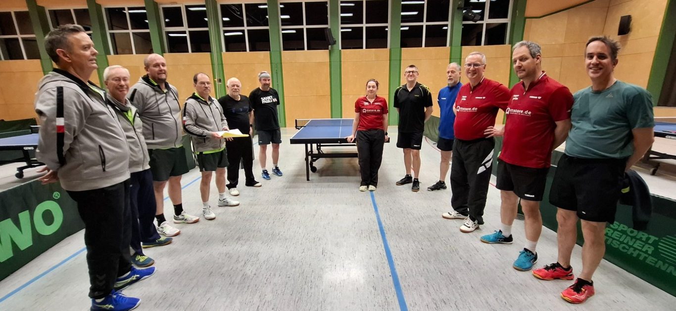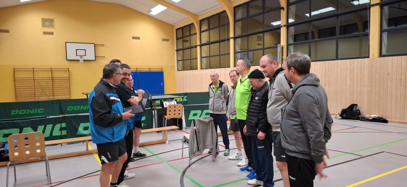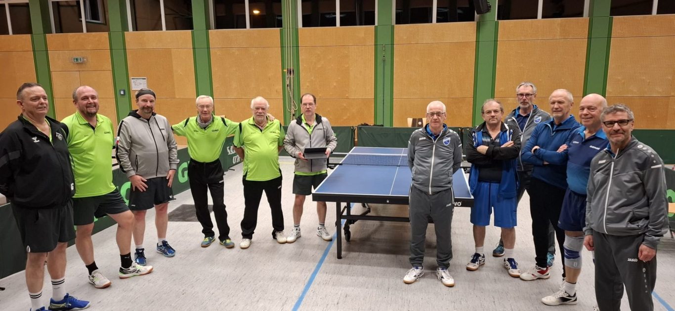 Die ersten Senioren waren am 20.11.25 beim Tabellenführer dem TTV Differten zu Gast… Da unsere „ Krankenabteilung“ immer noch voll ist, mussten wir mit 2 Mann/ Frau antreten… Ein Sieg schien nicht in Sicht, aber wir wollten uns gut verkaufen, vielleicht könnte es ja ein Wunder geben, welches uns beflügelt und den Gegner straucheln lies… Aber an diesem Abend halfen keine Gebete und leider trat auch kein Wunder ein… Wir starteten mit 0:3 in den Doppeln, wobei R. Röhrig/ D. Thinnes , H. Rieß/ M. Theisen und B.Müller/B.Kindt dem Gegner zumindest einen Satz abnahmen… Dann jedoch nahm das Unglück seinen Lauf… D. Thinnes verlor klar mit 0:3 und auch R. Röhrig verlor sein Spiel mir 0:3, wobei äußerst knapp mir 11:13, 12:14 und 11:13, es hätte da auch genau andersherum ausgehen können… Ach ärgerlich, nun stand es schon 0:5 aus unserer Sicht… H. Rieß verlor klar mit 0:3, aber B.Müller ( Bine) hatte ebenfalls die Chance, sein Spiel zu gewinnen, er verlor knapp, wie R. Röhrig, sein Spiel mit 13:15, 9:11 und 10:12 zum dann schon 0:7… B. Kindt und M. Theisen verloren ebenfalls klar zum 0:9 aus unserer Sicht…